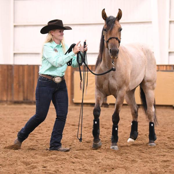 A few years after joining 4-H, she came across the Method and was drawn to Clinton’s approach to training. “Even as a kid, I understood what he was talking about and could practice the exercises with my horse,” she says. “My mom and dad noticed I was interested in the Method and began buying me the Downunder Horsemanship training kits and equipment for my birthdays and Christmases.”
