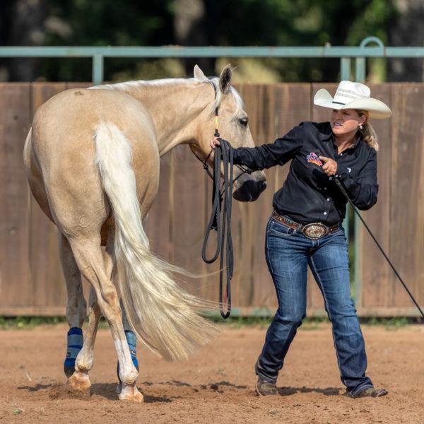 Ruth studied Clinton’s training tapes and trained her horses using his groundwork and riding exercises. Eventually, she began working horses for the public and competing in Extreme Mustang Makeover Competitions. “I put the Method to the test. In the Extreme Mustang Makeover Competitions, you take on mustangs that are completely untouched and compete on them in a hundred days,” Ruth says. “The Method is safe and it helps me do my job and allows me to feel as if I’m making a difference in the life of a horse.”