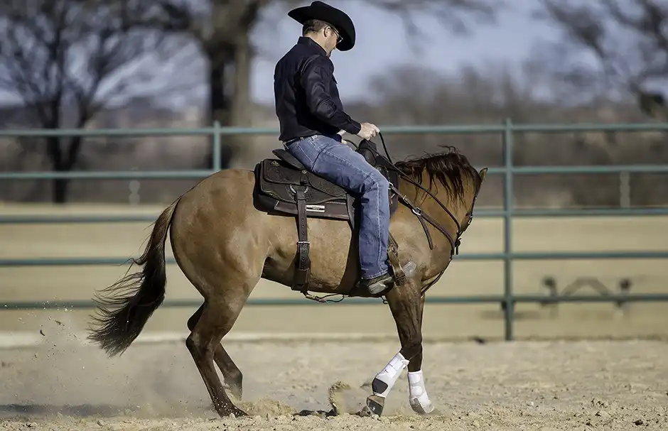 Not only is backing circles a great softening and suppling exercise, but it also helps set a horse up for executing spins and rollbacks better. When a lot of horses do a spin or rollback, they put their inside front foot too far forward and then have a hard time crossing over correctly. Backing circles gets the horse’s inside front foot to step back and over so that when he goes into a spin or rollback, his inside front foot is always stepping in the correct position.