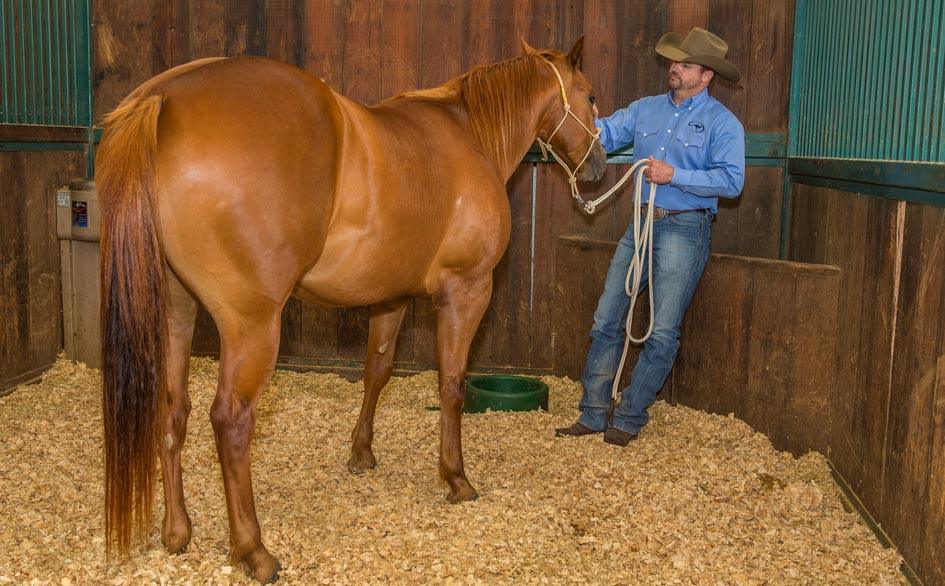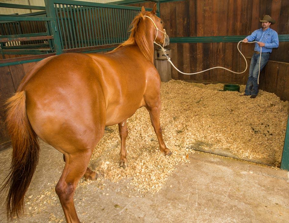 When the horse aces the test in the roundpen, practice the same concept in the stall. Only move into the stall when the horse is responding well in the roundpen and you have his respect.