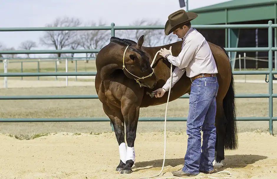 Practice the exercise on both sides of the horse’s body until he is responding well and doesn’t overreact to the spur.