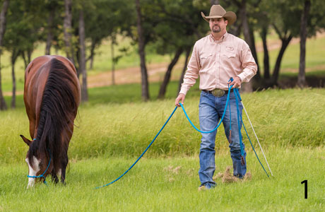 1. If this scenario looks familiar, you need to step up your game. Rather than letting your horse drag behind you and snatch grass, be a leader. Get his feet moving forwards, backwards, left and right to get him to tune in to you and to get in the right mind frame for your lesson ahead. Or, use the time to simply brush-up on the groundwork exercises you’ve taught him. Remember what I always say: Horses are nothing but maintenance with legs. You may have done a great job teaching your horse the Fundamentals exercises and have earned his respect and trust, but if you don’t remind him of those lessons, he’ll soon forget them. In order for the horse to continue to use the thinking side of his brain and remain respectful, you have to constantly remind him by moving his feet forwards, backwards, left and right and always rewarding the slightest try. Horses do not stay the same. Every day, they either get a little better or a little worse, depending on your interaction with them.