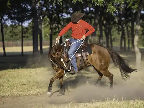 The top three reasons why horses jig are: 1) he’s fresh and full of pent up energy, 2) he’s barn sour and trying to get home faster, and 3) he’s trying to get to the front of a group. If your horse is jigging because he’s fresh, it means you did a poor job of preparing him for the trail ride. You should have knocked his pent up energy out of him with groundwork exercises like Lunging for Respect Stage Two. Keep something in mind, it’s unfair to not ride your horse all week and then pull him out of his stall on Saturday, throw the saddle on him and think you can ride off down the trail like John Wayne. Horses require maintenance.